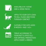 Suitable for cats and kittens from approximately 8 weeks of age and at least 1 kg in weight. Each pack offers month-by-month coverage.